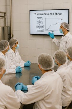 Treinamentos periódicos e saúde ocupacional para equipes de fábrica e logística.
